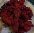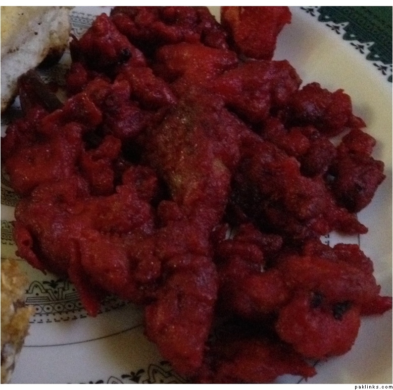 In the remaining oil, add the karri patta leaves and green chiilis, and give it a stir…now add about 1 heaping tablespoon of yogurt and some Shan Tandoori Masala (I never measure, I just go by taste, so make it as spicy as you’d like!) and stir it around again so that the yogurt and masala cook slightly, just for a few seconds…Now add the reserved chicken and mix it really well..this should not be a liquidy, curry type dish! You just want the yogurt, masala, and karri patta to mix well with the chicken and permeate throughout the dish! At this stage is where I like to add a few drops of the liquid red food color. Add the chopped podina, cover and let it bhoonify on medium heat for a few minutes..and Enjoy!!!