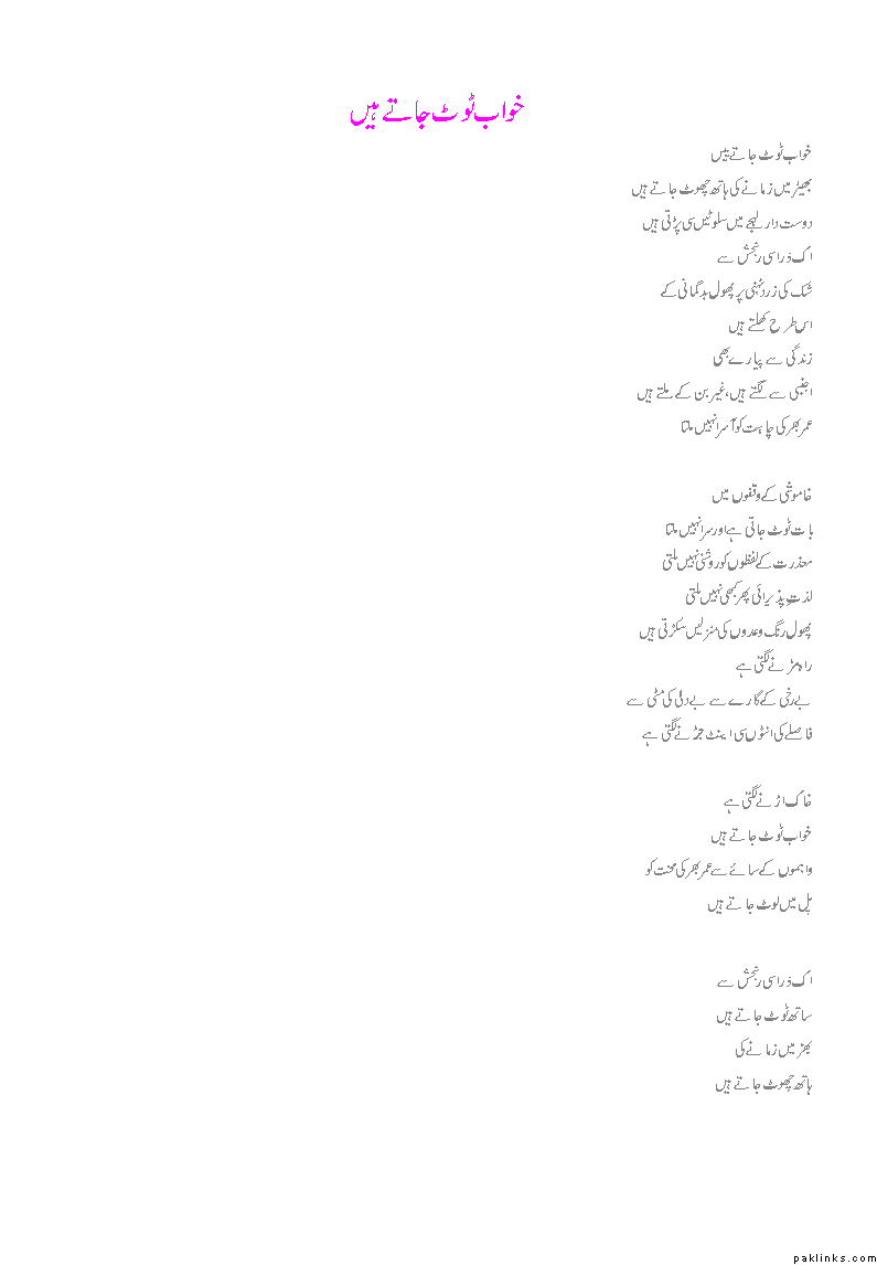 Khwab kabhi juray huay miltay hi nahi jo toot jain!
