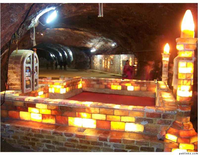 KHEWRA SALT MINES inside the mine..has a beautiful mosque made of SALT and deep inside there is a SALT POND which has an overhead bridge to take you from one end to the other. Most of the shooting of the movie was done there.