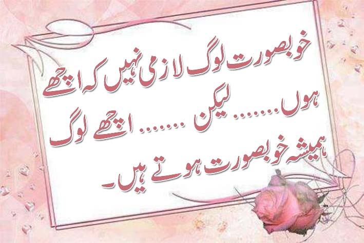 خوبصورت لوگ لازمی نہیں کہ اچھے ہوں ۔۔۔۔۔۔۔۔۔ لیکن ۔۔۔۔۔۔۔۔۔۔۔ اچھے لوگ ہمیشہ خوبصورت ہوتے ہیں۔
