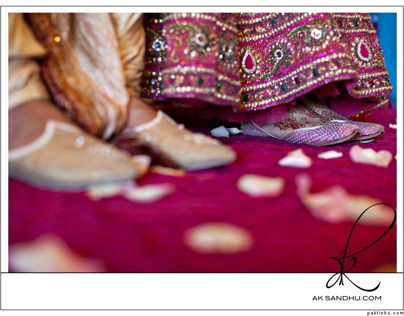me and hubby same height so wore khusse on mehndi and flat sandals on wedding day...i had mehndi on my feet and wore massive anklets so it all looked nice :)