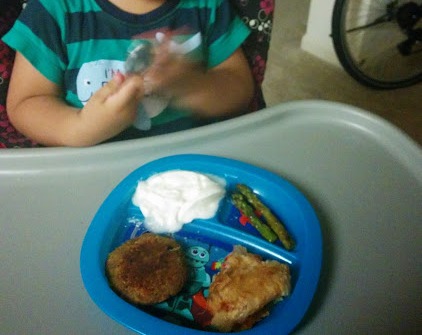 Yesterdays lunch. He had seconds and thirds of asparagus and yogurt. ![]()