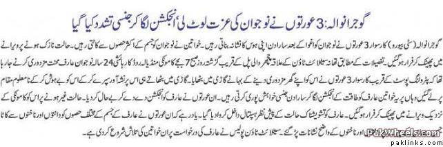 wese umthing happend like tht in karachi too boardbasin k area me u knwo the food street their wahan 4 women kidnapd a waiter held him hostage and raped him for a week… thn threw him in bushes near clifton…