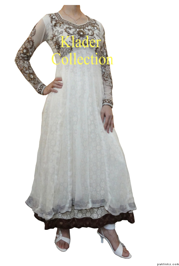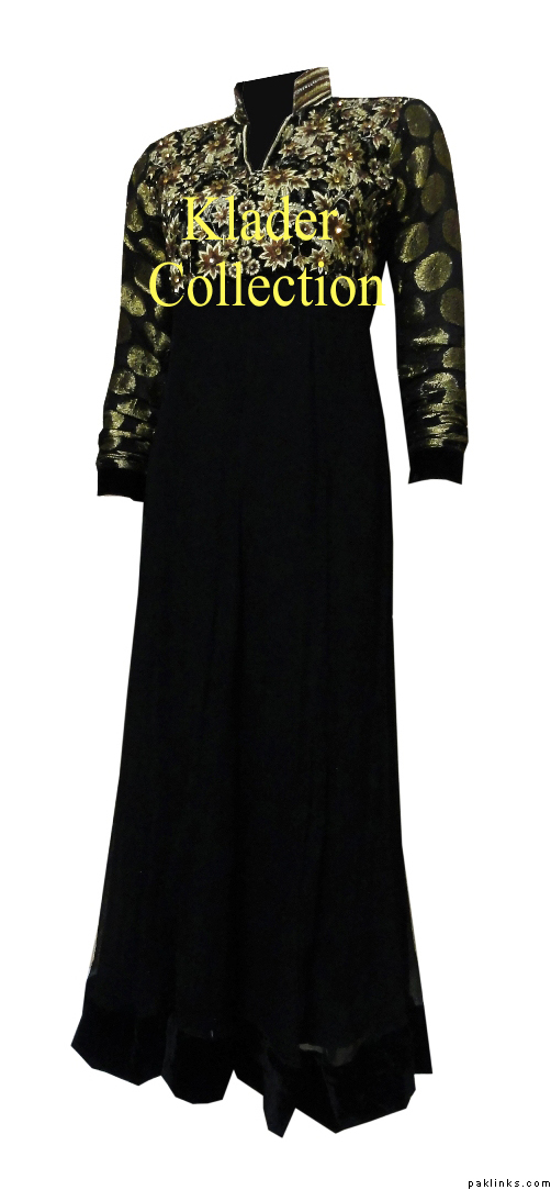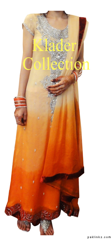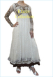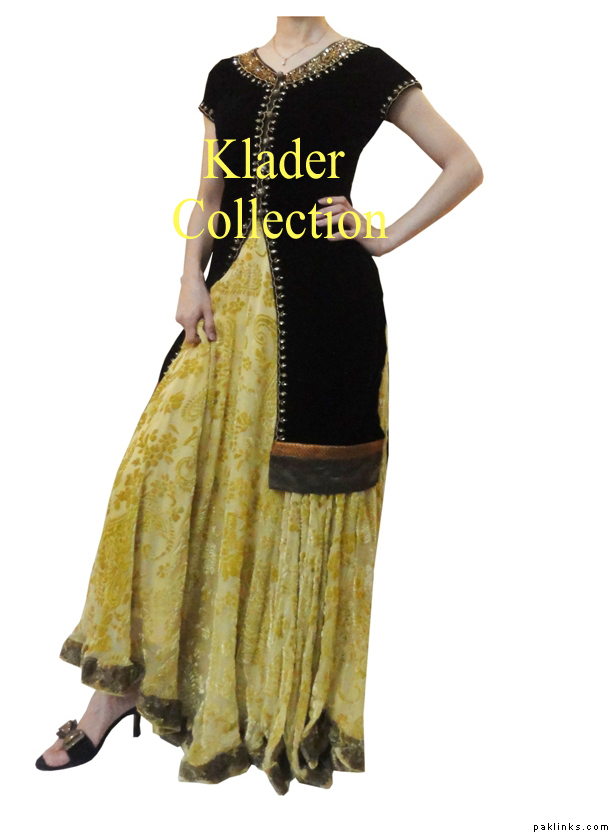 It is made of Pure dull chifon, for upper frock with palachi panels, the inner gown is made of georget fabric and it has velvet pattis.