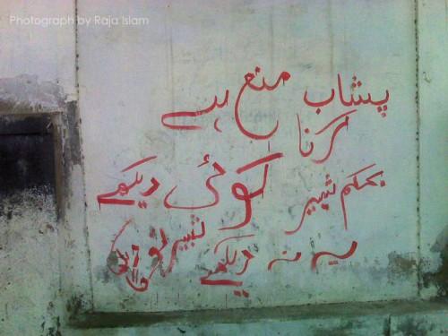 "paishaab karna manaa hai koi dekhe ya na dekhe"...and then another line is added "koi tou dekhe ga"