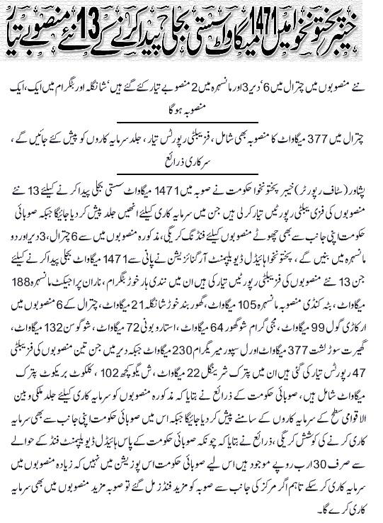 KP Govt. Hydro Power Projects (Dams); in-Process and Future Plane till 2020. A Comprehensive Summary in Slides.