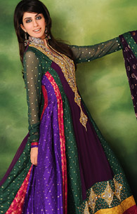 Dupatta/scarf: Chiffon dupatta Green & Blue color finished with dark salmon pipin.