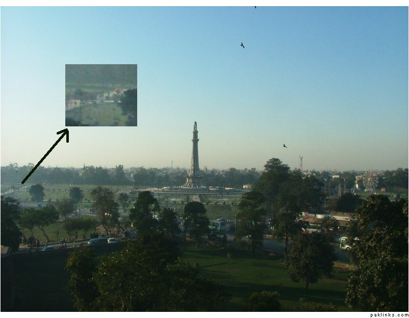 It is away from minar-e- pakistan but inside the premisis, apparently. and it is not acceptable. I guess it is here