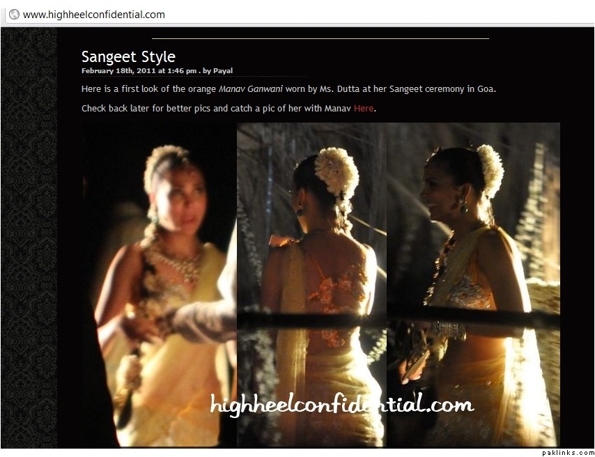More elaborate high maintenance clothes are planned for the other wedding festivities that will be happening in Goa, this weekend. She'll wear a Manav Gangwani sunflower orange lehnga studded with Swarovski crystals at the Sangeet, while Mahesh will wear an ivory coloured kurta pajama with a sunflower orange stole. She will also wear a traditional polki jewelry set in gold and uncut diamonds.