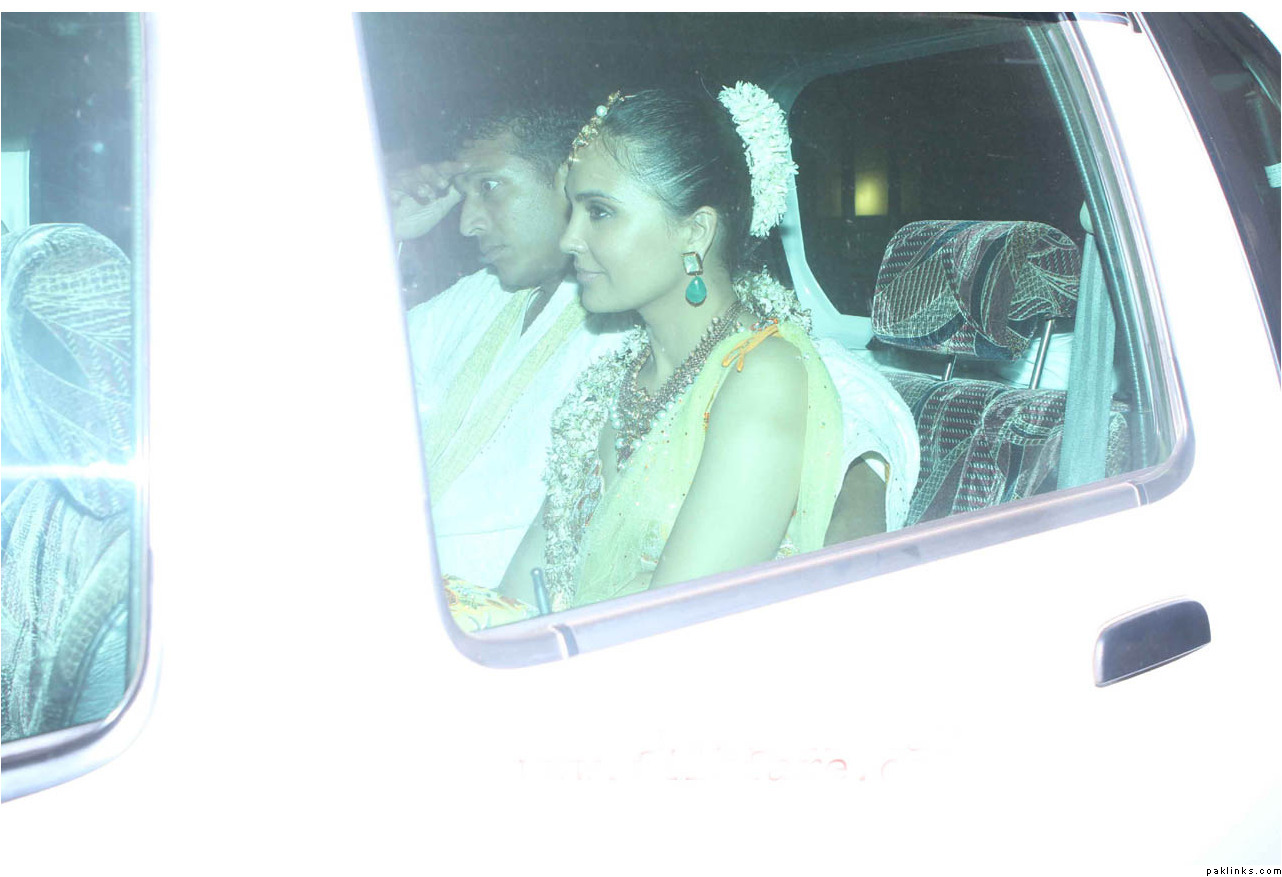 Bollywood actress Lara Dutta and tennis ace Mahesh Bhupathi had a registered marriage on Wednesday. Lara wore a beige Ritu Kumar sari from Ritu Kumar’s Falaknuma collection, and Mahesh a khaki suit.