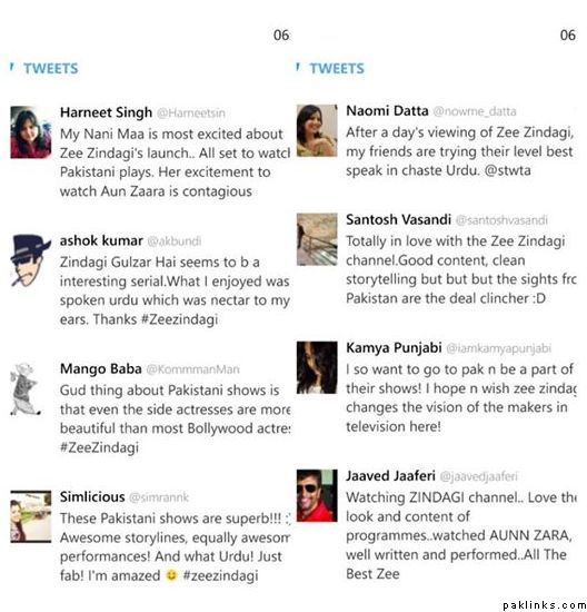 Indian actors reviews about Pakistani dramas on ZeeZindagiā¦here are screen shot of some tweets