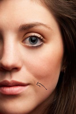 Ok so she seems to have this little indent kinda thingy along the laugh line (as marked in bk) bt it shows only when she is laughing hard. I don’t see a big deal.