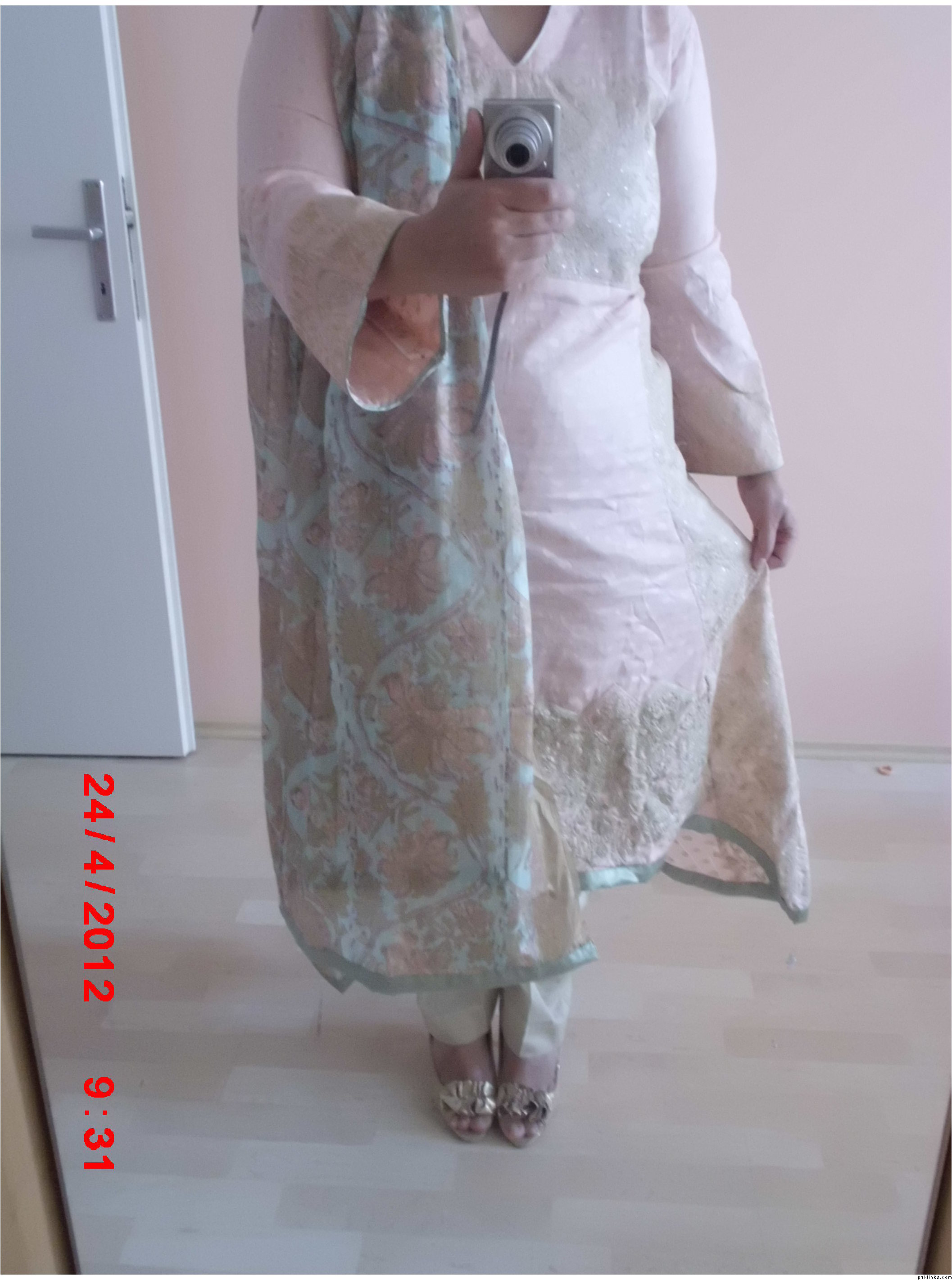 Saadia, looks grt. but pls describe the exact color. photo shoot pics make it look peach. ur pic makes it look very light pink. whats the exact shade?