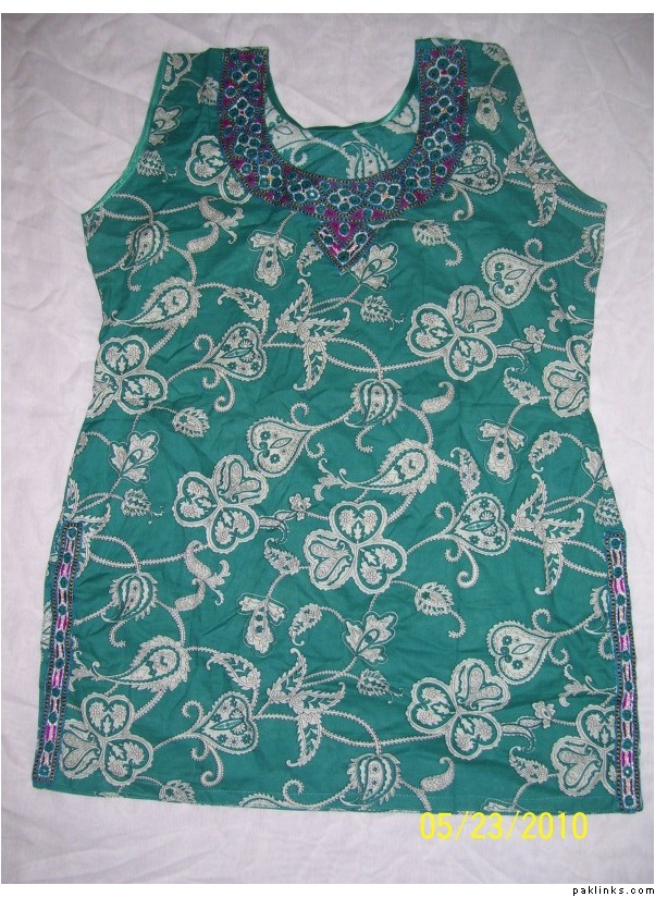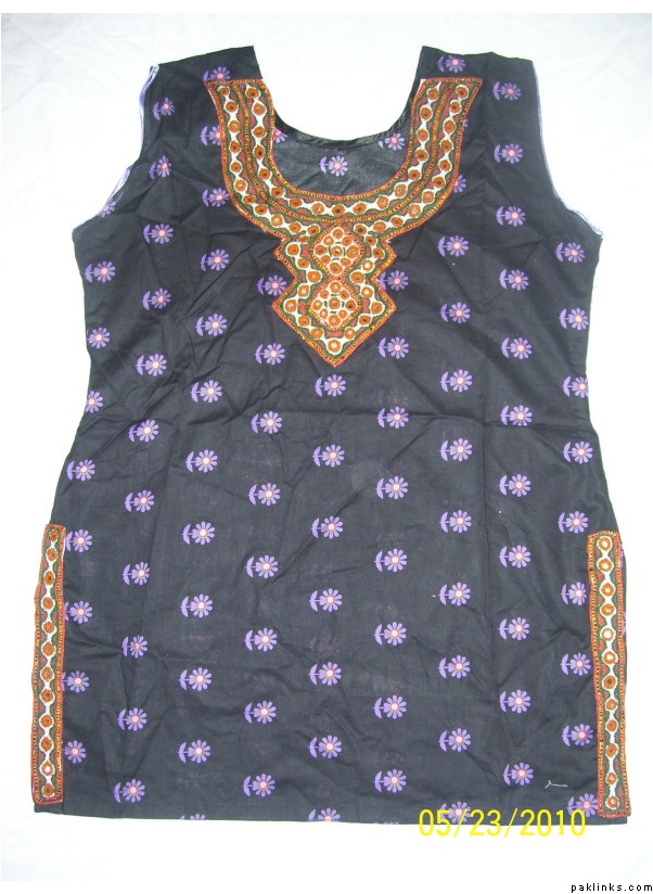 Beat the heat in these sleevelss lawn kurtis. Size is medium. Price is $22 each plus $5 shipping within the continental United States, for other countries I shall charge whatever the post office charges . I do combine shipping. The black and purple ones have a small motif at the back as well.