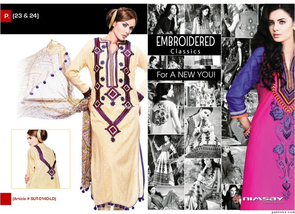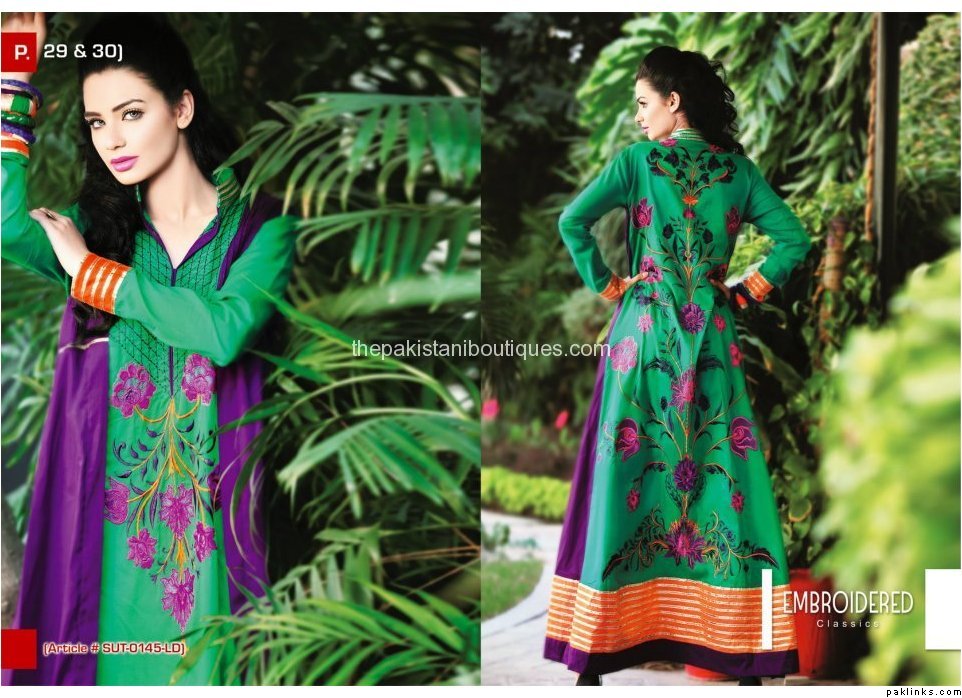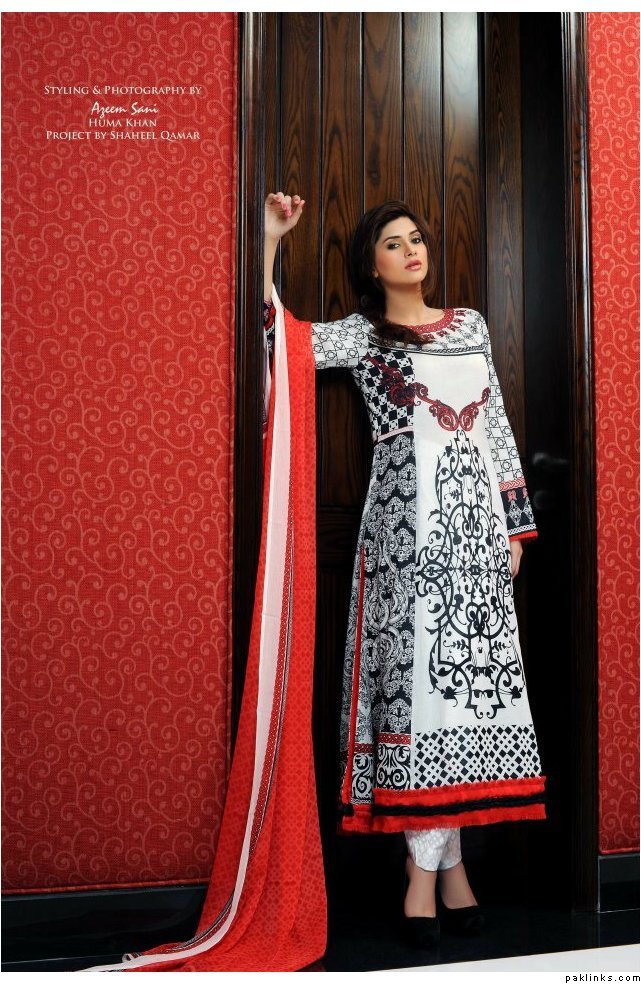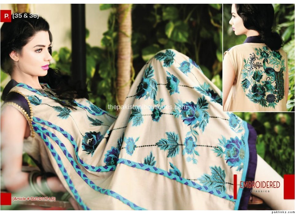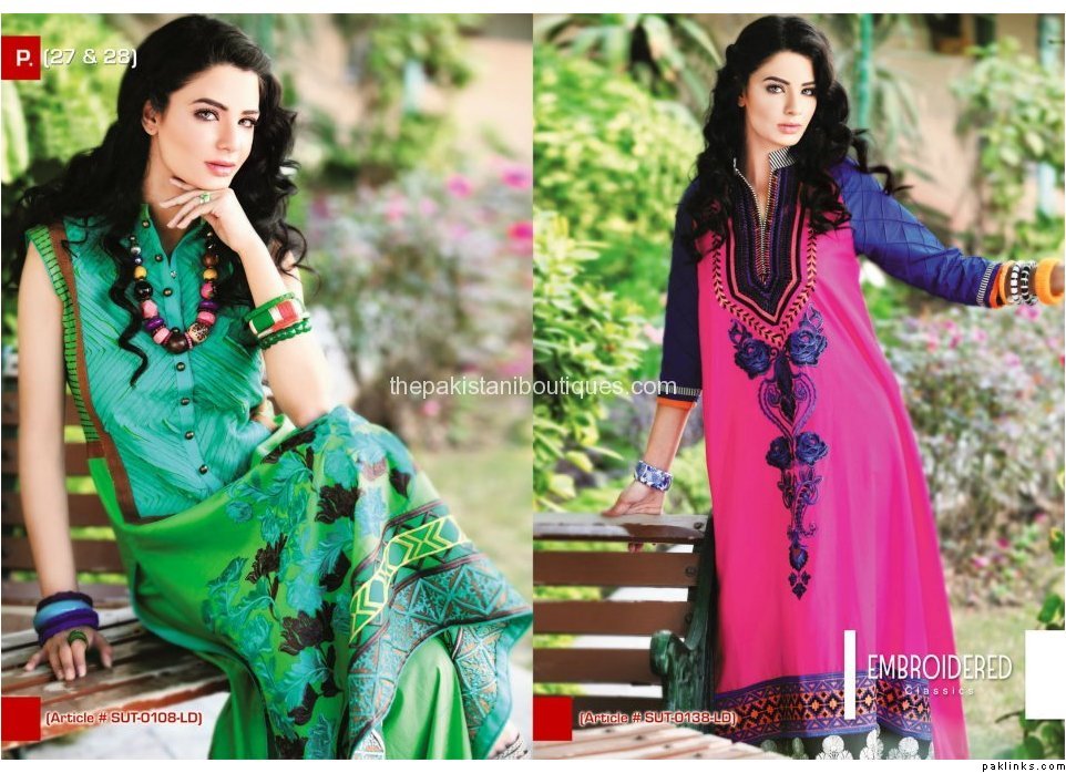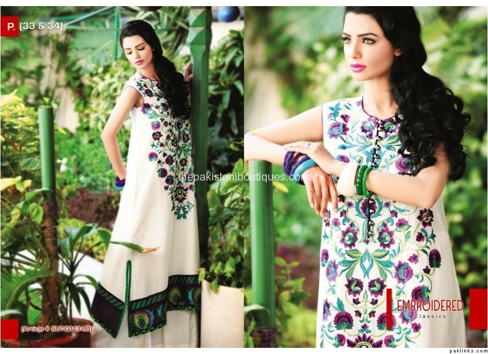 Gul Ahmed and Lakhani 's fabrics are the best. You can even get their plain lawn suits ( without embroidery & chiffon duppata ). Gul Ahmed also sells shirt pieces.