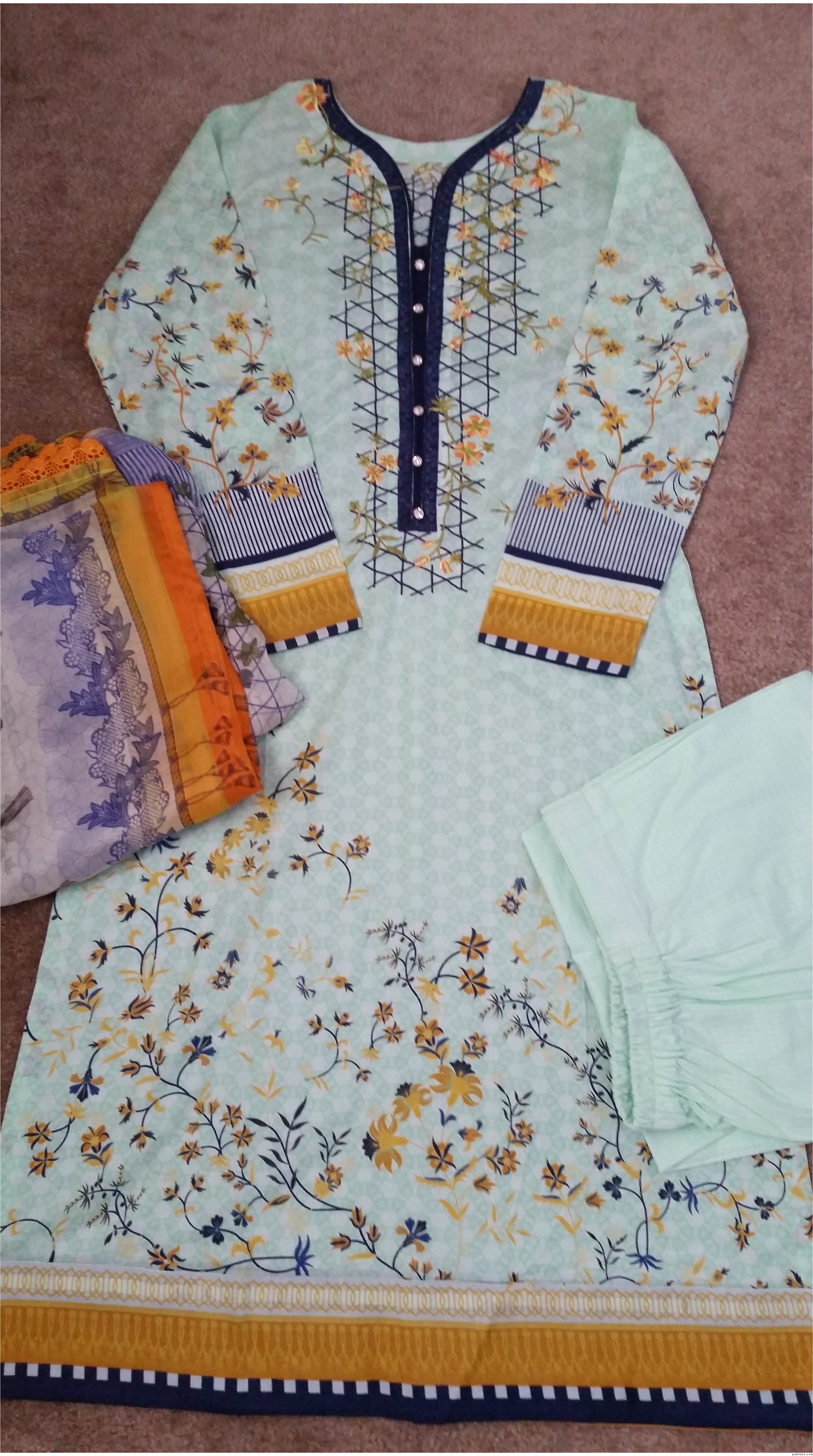 My husband’s mumani does: Facebook, she’s super cheap, actually if people are in the US, she sends lots of lawn copies/originals and her clothes in general pretty inexpensive. I think she stocks, in NJ, TX, CA, Toronto. Maybe a few other places…I live in CA, so I see the stuff that comes there only.