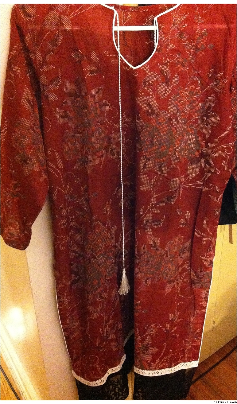 I got my lawn purchases from Sanaulla todayv Did anybody get SS 11b stitched? I can’t seem to understand where to put the zig-zag banarsi fabric lace. Also, the sleeves are of a different colour as compared to the rest of the kameez and I dont think they’ll look nice. So, I’ve decided to make the outfit as a sleeveless one. Now when I see the catalogue pic, I think they’ve used the sleeves to do some kind of designing at the back but I cant make out anything Can anybody help?