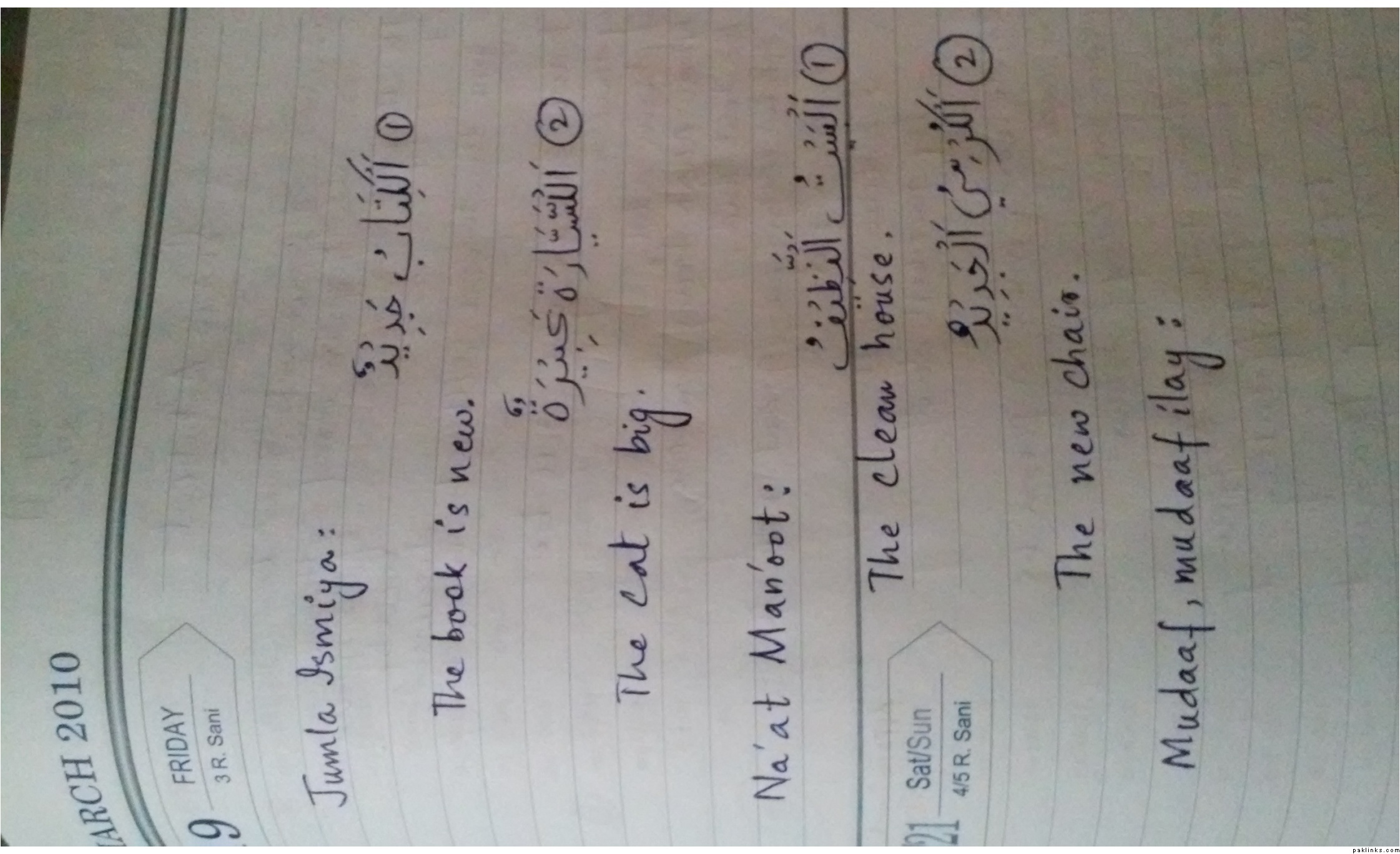using the below words create two examples of jumla ismiyya, two examples of na'at man'oot and two examples of mudaaf, mudaaf ilay.
