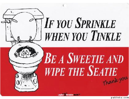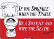 "If u sprinkle when u tinkle please be neat and wipe the seat"