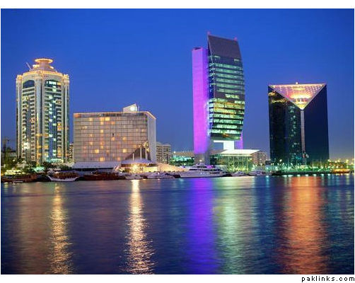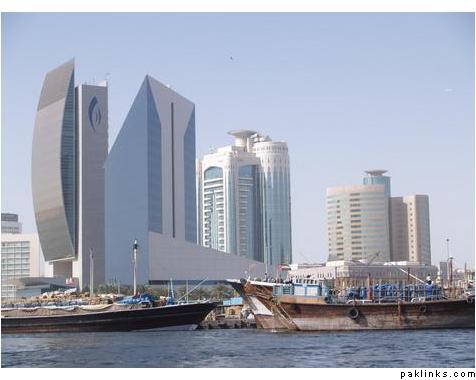 From Right to left: Dubai Chamber of commerce, Dubai national Bank, Al-Reem Tower & Sheraton Deira Hotel.