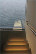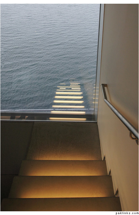 The stairs are not going in the water. It is a reflection of the stairs inside.