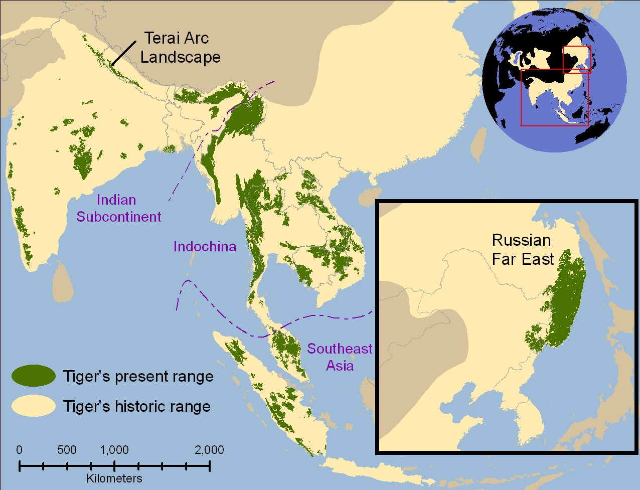 Historic range of tigers