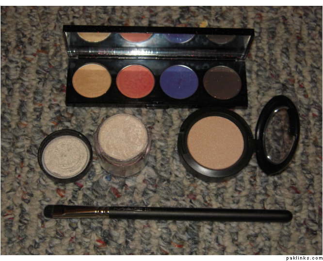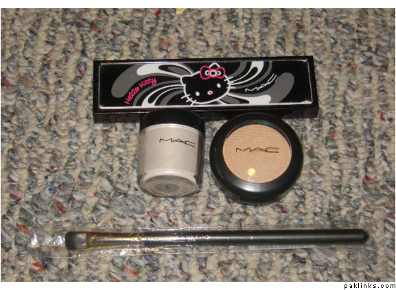 MAC things. Since I love Hello Kitty, I was super-annoyed having missed the 2008 collection. I have all the cheek stuff from the Hello Kitty collection but wanted to get 1 of 2 quads, and I managed to get one! Then there is MAC Vanilla pigment (my backup jar. I like these older/bigger jars. You get almost double the product (7.5g) and since I use Vanilla pigment as a highlighter, I like the bigger jars since the brush can go in perfect), a #214 brush to smudge liner and a Mega Metal Eyeshadow in Peek-at-You.