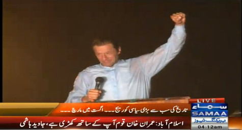Hashmi to the crowd: *“humara wazeer e azam Imran Khan hai”. “humme koi or nahi chahiye, humme koi or qabool nahi he”.
