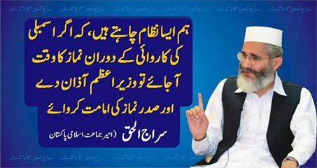 Syed Talat Hussain @TalatHussain12](https://twitter.com/TalatHussain12) 2h Sirajul Haq of JI in serious negotiations between PTI and Govt.I have seen draft proposals.Fairly comprehensive. Sensible.
