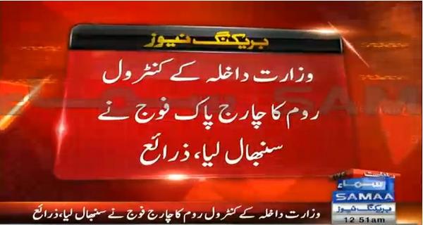 He is reported to have made the remark to storm the PM House if PM did not resign by 8pm tomorrow and as result the army had to make a statement warning Imran Khan and Tahir Ul Qadri. Don’t know what IK actually said, but I had posted here yesterday that the army had pulled the plug on IK and TUQ, and the drama was about to end so perhaps this was part of the arranged face saving exercise for both IK and TUQ. This would explain how they managed to get a crane into red zone and how they police did not stop them, and allowed them to enter the red zone.