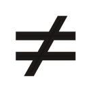 The symbol used to denote inequation (when items are not equal) is a slashed equals sign “≠” (U+2260; 2260,Alt+X in Microsoft Windows). In LaTeX, this is done with the "