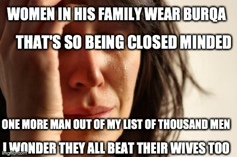 But then you find out his whole extended family, and I mean all of them - both mom and dad's sides - are super conservative, burqa walis with niqabs, and in fact he hasn't talked to any of his lady cousins since they were like 12, because he is their na-mehram, and he also doesn't know what they look like.