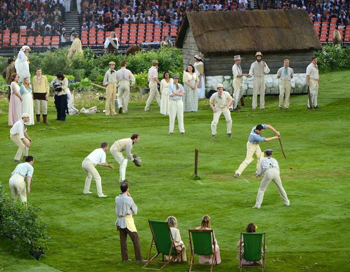 A Cricket skit is being played during opening ceremony of London Olympics 2012.