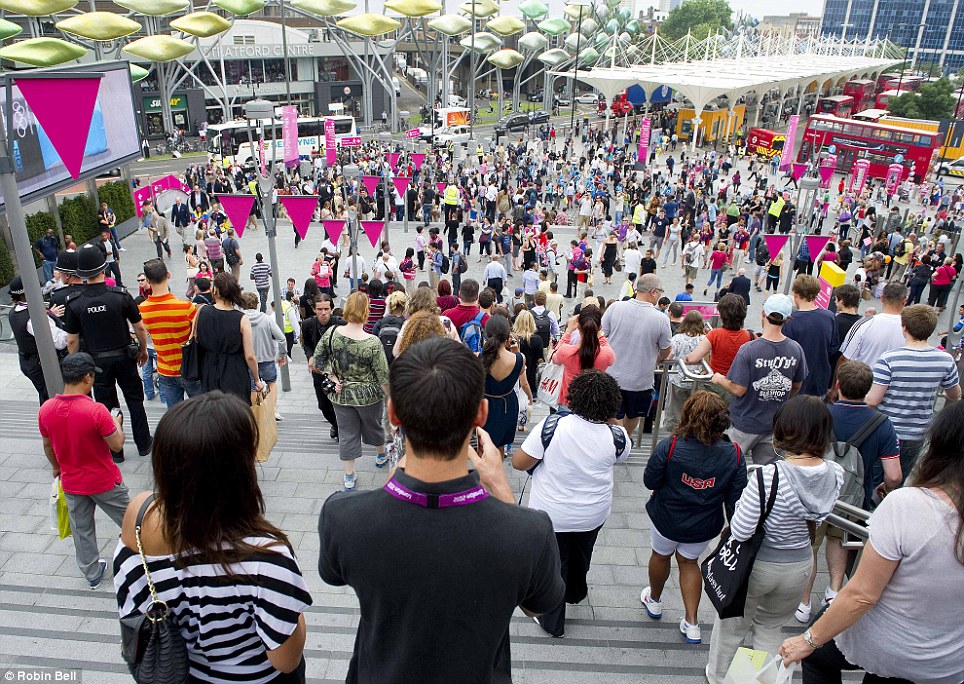 Ready, steady, go!: Crowds start to arrive in Stratford shortly after 5, ahead of the Opening Ceremony tonight.