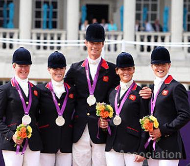 Great Britain’s (left to right) Nicola Wilson, Zara Phillips, William Fox-Pitt, Mary King and Kristina Cook with their silver medals at the Team Eventing Medal ceremony on day four of the London Olympic Games at Greenwich Park, 31 July 2012.