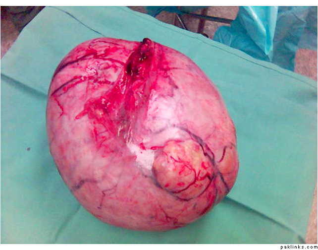 it was the size of a big fat watrmelon- the dark green ones! the woman looked as though she was expecting- but it was infact this big fat lump of cancer!