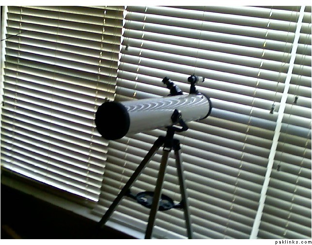 wat we lookin at here?...the telesope...or them lovely blinds for your window?