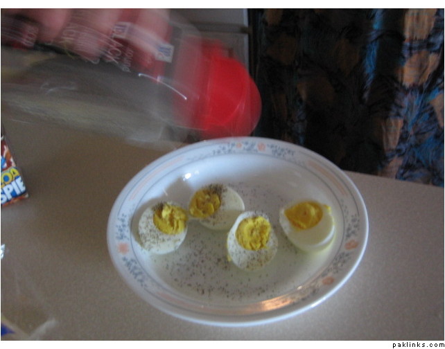 Nothing like boiled anday loaded with kaali mirach and some salt