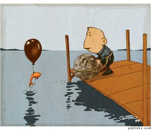 You see if the man had the helium balloon - he would be rising HIGH - good for him!