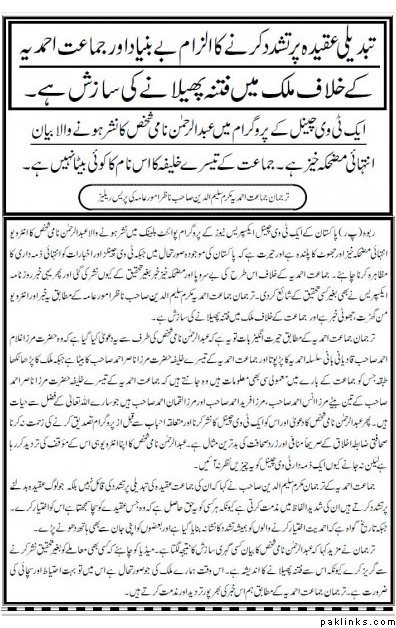 Thanks for answering my concerns regarding this person Abdur Rahman, if it's an attempt to spread hatred against Ahmedis then it's just evil and unIslamic.