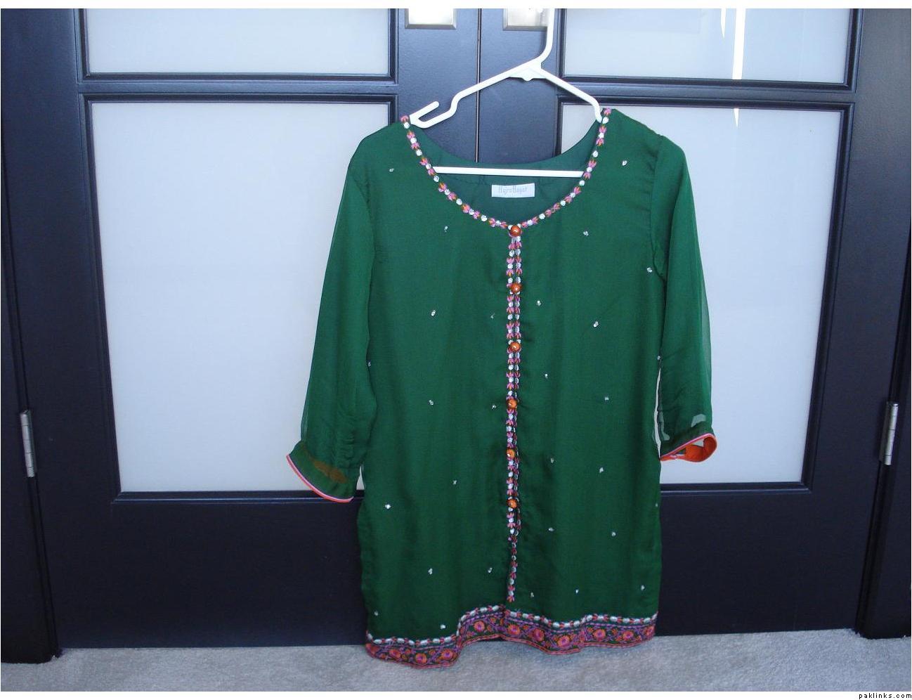 \design achay hain per stiching sorry to say app khud daikhain green wali jo kurtee hai us kai shoulders kahan ja rahay hain aur stich ,hmmm bohat kharab hai,