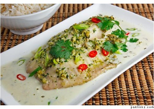 i baked it and used cod fillets (85 calories, 1.2 grams fat) instead of pomfret