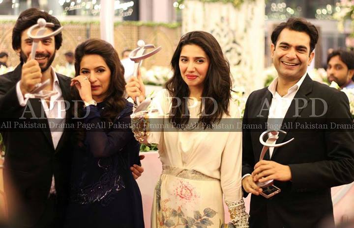 Momina Duraid holds her award for the Best TV Play - Humsafar