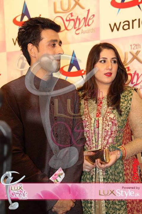 Fawad Khan with wife , Mahira Khan & sarmad sultan khosat at LSA2013 with their awards