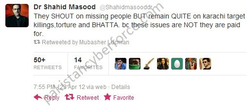 *"Where are the SAFMA journalists now? They love talking about “missing persons” and “abductions”, what about Lyari? I guess they didn’t pay “journalists” like Nusrat and Javed and the slightly insane Marvi Sirmed to talk about those things.