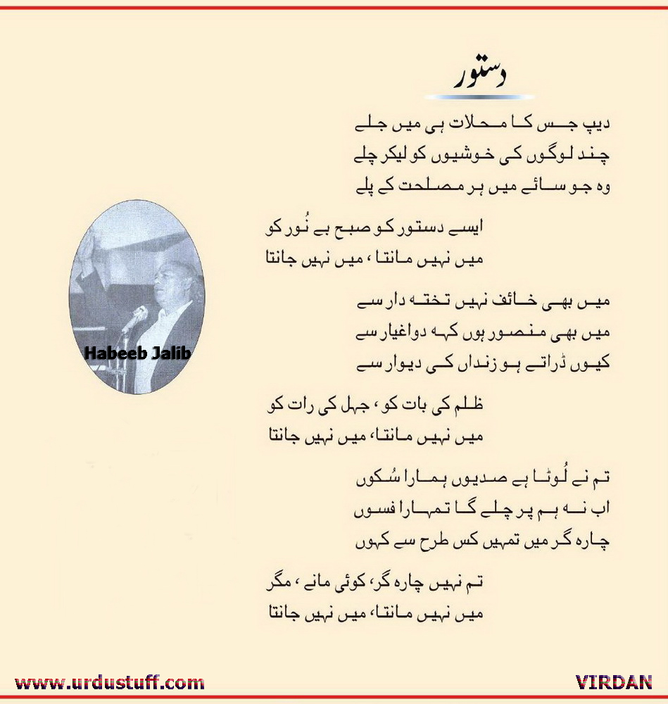 Jiia aap ne Jalib sahib ke kuch qisse share karne ko kaha tha. ab wada pura karo, nahin to main samjhooonga aap Zardari ki party main ho ![]()