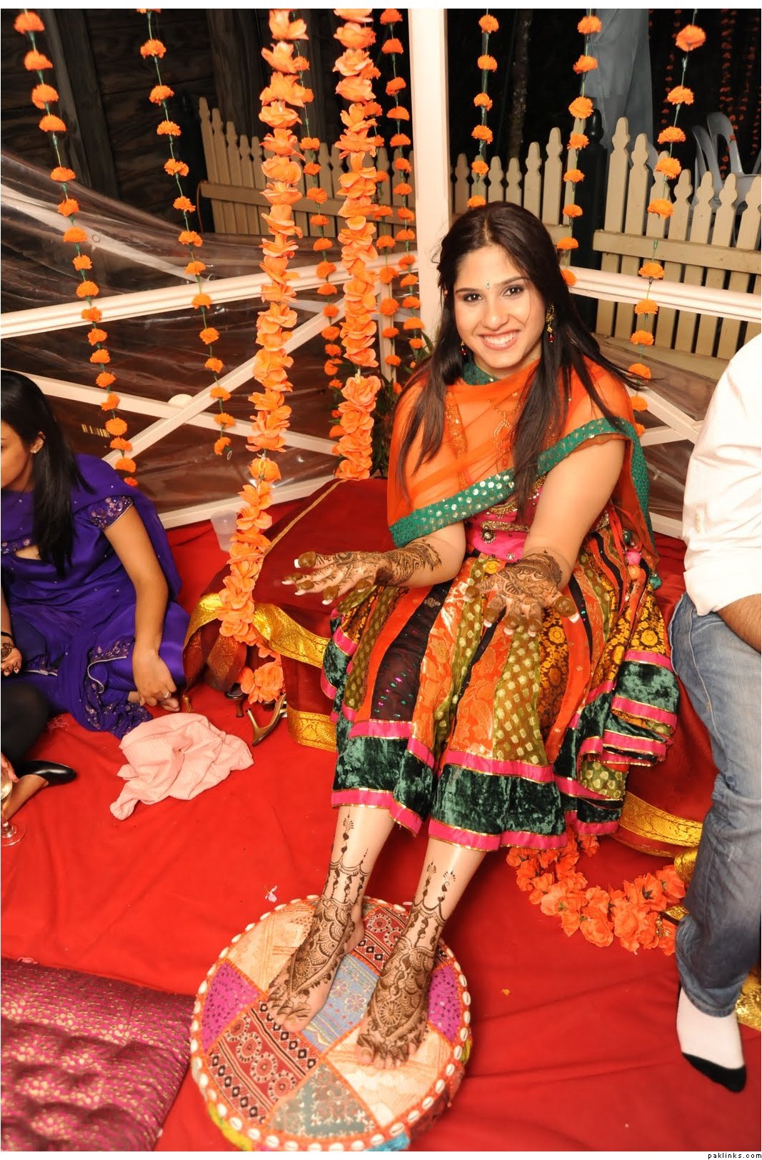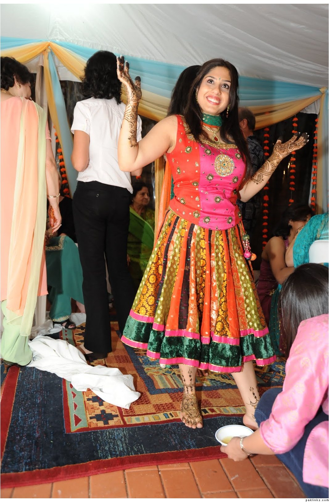 somehow mehndi's associated with very eastern styling, and for a fact it looks good too that way mostly, hence a churidar , ejaars or a patiala would do better then a capri I believe.