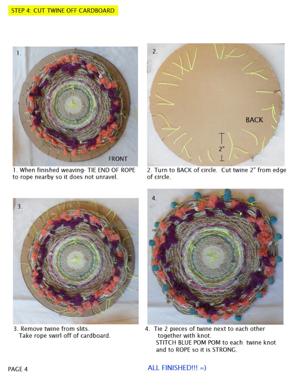 Materials for this project: Large card board, black marker, scissor, neon thread, ropes in different size and colors and pom pom