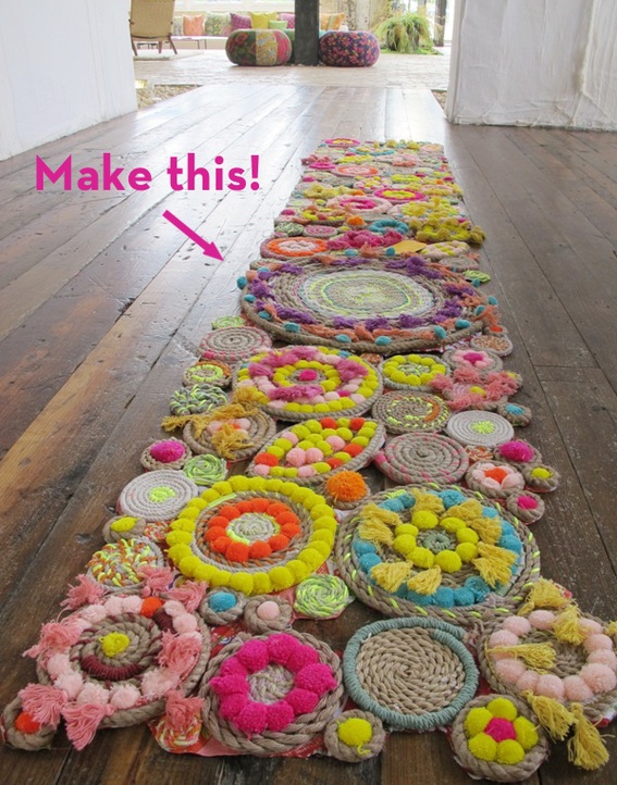 once you’ve got it down, you can make a whole bunch in different sizes and colors, to create a whole wall tapestry