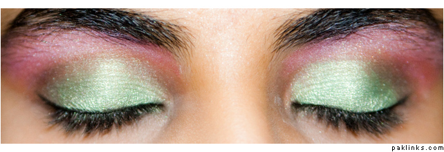 For the green eyeshadow I actually mixed a cheapo Covergirl Mint color I had with a little bit of Urban Decay’s hunter green to give it a bit more of a green look.